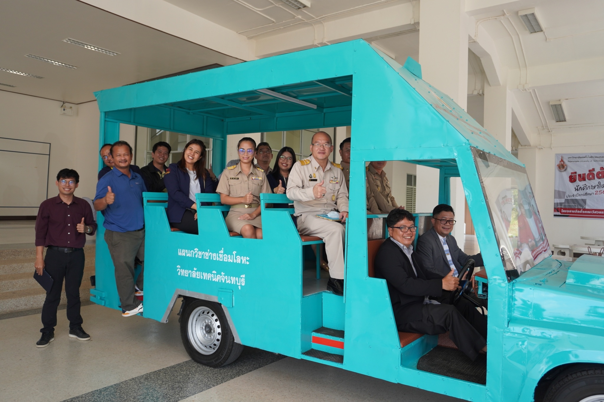 โดยทางวิทยาลัยเทคนิคจันทบุรี ได้ให้ความอนุเคราะห์มอบสิ่งประดิษฐ์โครงสร้างรถต่อพ่วง และทางสำนักงานวิทยาเขตจันทบุรี ได้ให้ความอนุเคราะห์งบประมาณในการซ่อมแซมรถต่อพ่วง