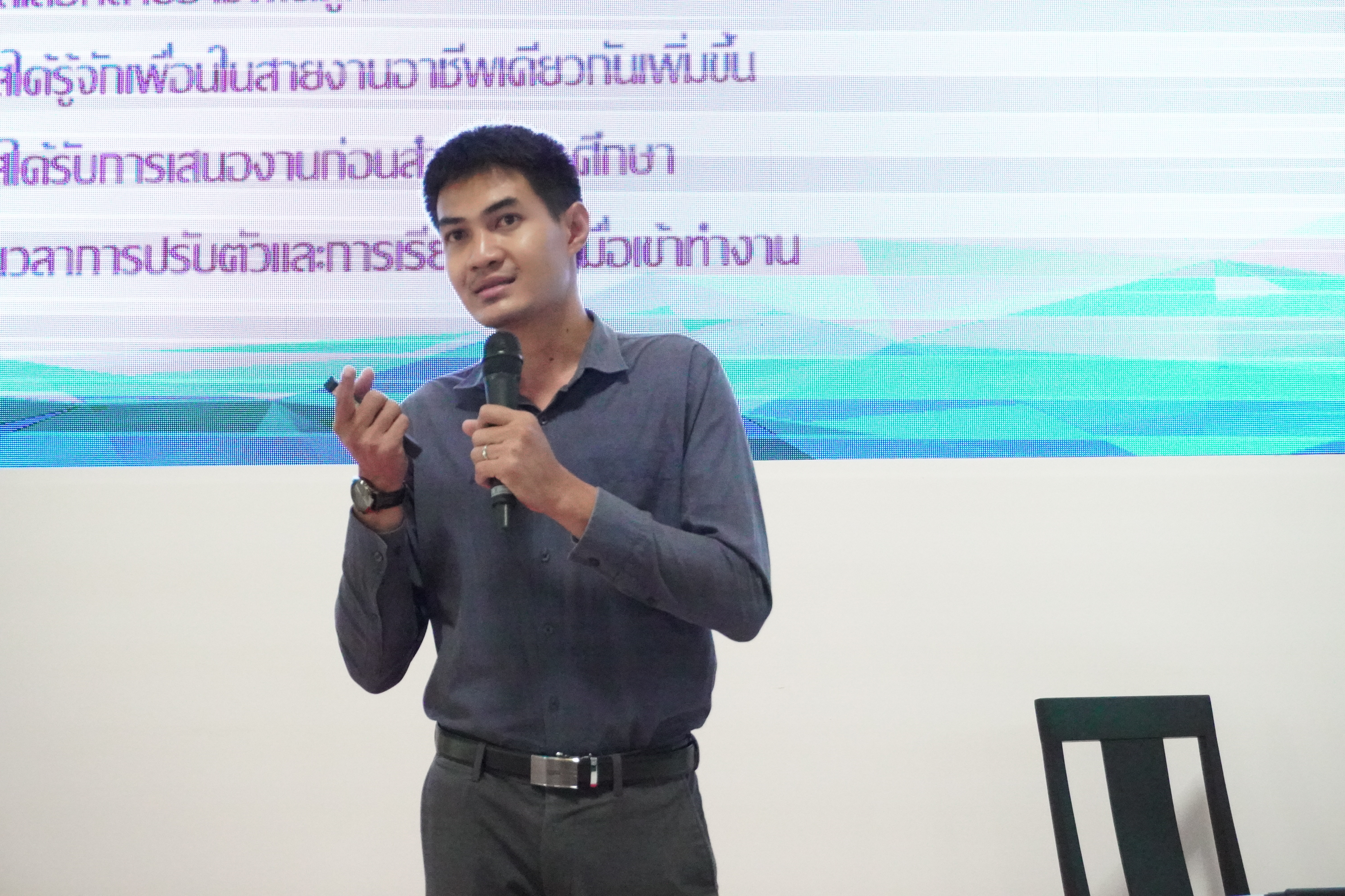 และมี อาจารย์ณัฐพล ที่รัก เป็นวิทยากร ปฐมนิเทศในหัวข้อ "เตรียมตัวอย่างไรก่อนออกสหกิจศึกษาและฝึกประสบการณ์วิชาชีพในสถานประกอบการ"