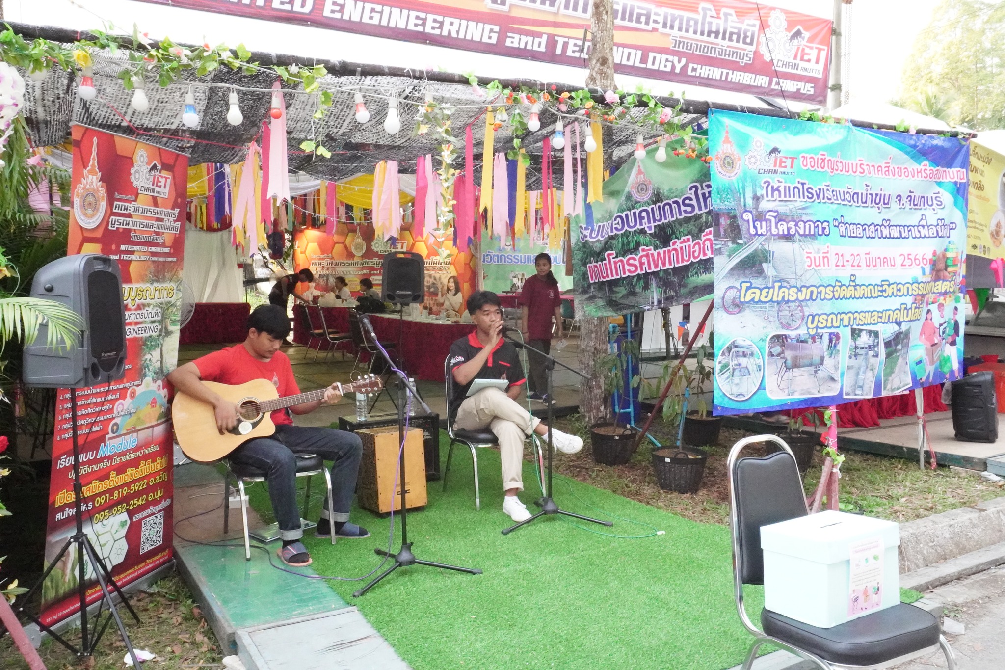 บรรยากาศเต็นท์โครงการจัดตั้งคณะวิศวกรรมศาสตร์บูรณาการและเทคโนโลยี ในงานราชมงคล รักษ์เหลืองจันท์ วันดอกไม้บาน ครั้งที่ 21
