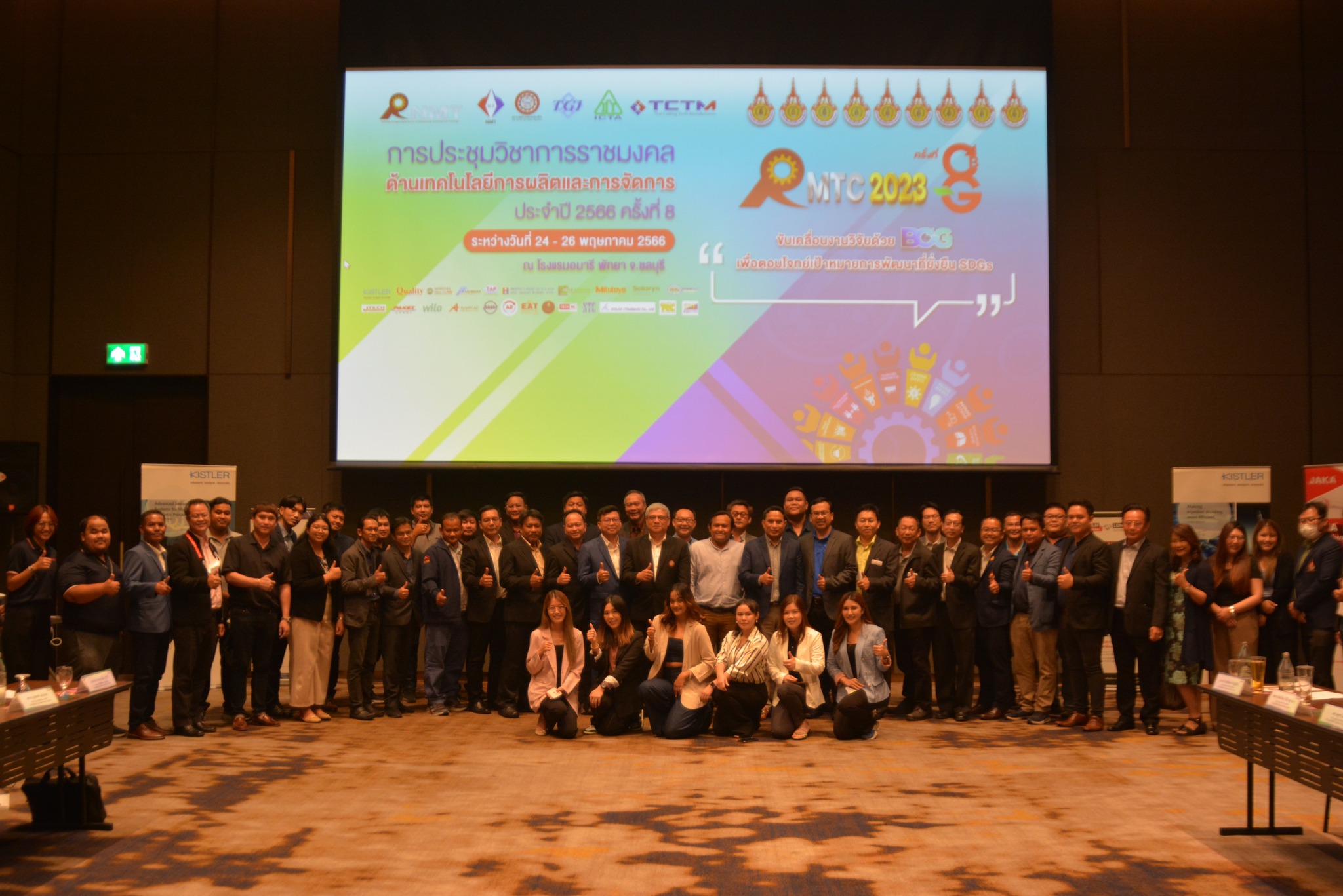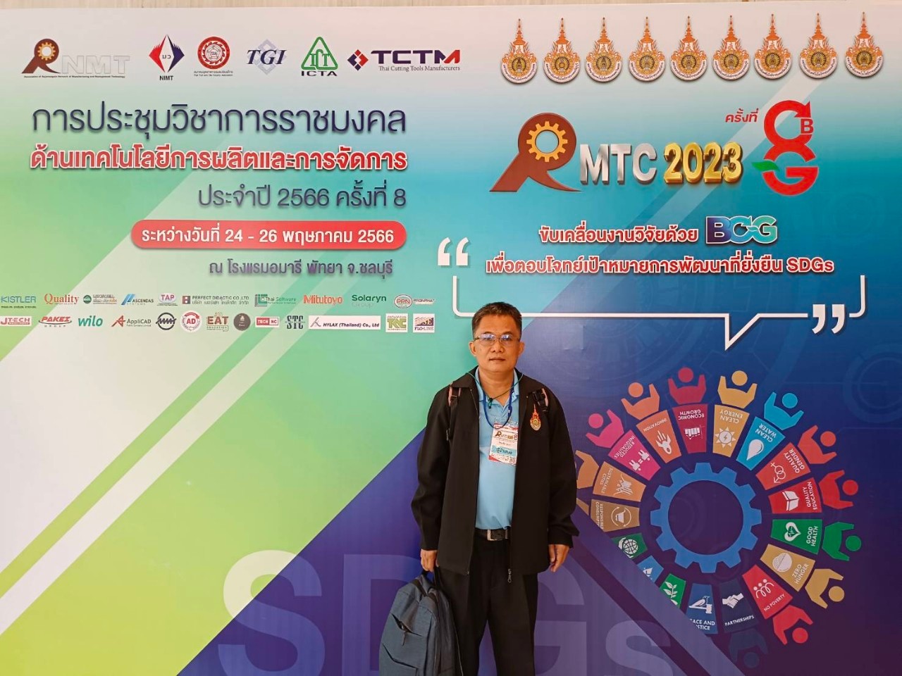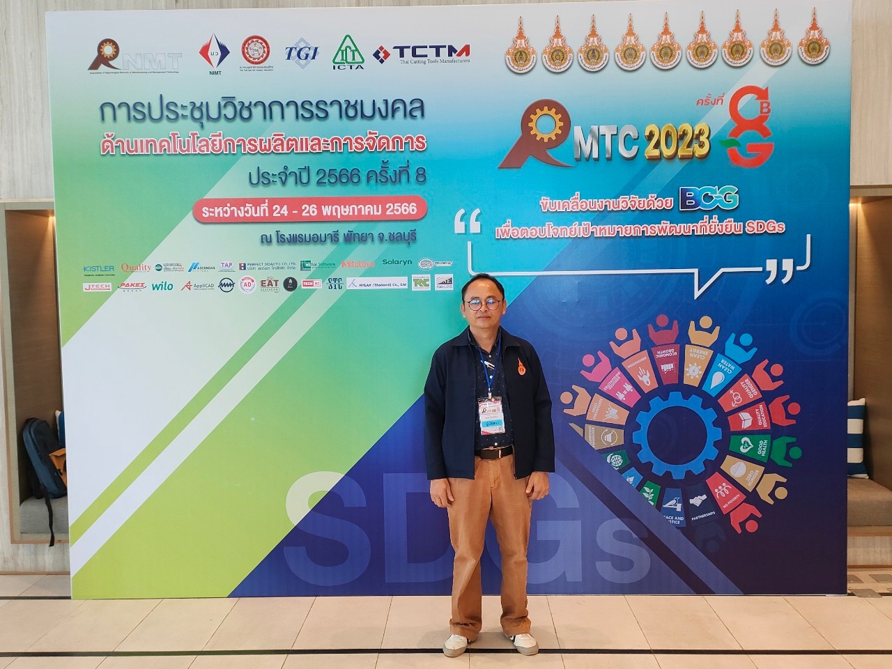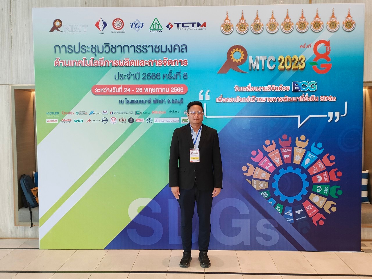 ผู้ช่วยศาสตราจารย์ฐิติ หมอรักษา รองผู้อำนวยการฝ่ายวิชาการและวิจัย นำคณาจารย์สาขาวิชาวิศวกรรมอุตสาหการ เข้าร่วมประชุมนำเสนอบทความวิจัยในการประชุมวิชาการราชมงคลด้านเทคโนโลยีการผลิตและการจัดการ ครั้งที่ 8 ประจำปี 2566 (RMTC2023) ระหว่างวันที่ 24-26 พฤษภาคม 2566 ณ โรงแรม อมารี พัทยา จังหวัดชลบุรี โดยสมาคมเครือข่ายราชมงคลด้านเทคโนโลยีการผลิตและจัดการ (Association of Rajamangala Network of Manufacturing and Management Technology : RNMT) ร่วมกับเจ้าภาพประจำปี 2566 คือมหาวิทยาลัยเทคโนโลยีราชมงคลกรุงเทพ และได้รับการสนับสนุนจากเครือข่ายราชมงคลทั่วประเทศอีก 8 แห่ง สำหรับการประชุมวิชาการครั้งที่ 8 หรือ RMTC 2023 ในปีนี้ ได้รับความอนุเคราะห์จากหน่วยงานที่มีชื่อเสียงและมีบทบาทในสายงานด้านเทคโนโลยีการผลิตและการจัดการ ประกอบไปด้วย สมาคมเครือข่ายราชมงคลด้านเทคโนโลยีการผลิตและจัดการ (RNMT) สมาคมอุตสาหกรรมแม่พิมพ์ไทย (TDIA) สถาบันไทย-เยอรมัน (TGI) สถาบันมาตรวิทยาแห่งชาติ (มว.) สมาคมผู้ผลิตเครื่องมือตัดไทย (TCTM) และคณะวิศวกรรมศาสตร์ 9 ราชมงคล ร่วมดำเนินการจัดงานประชุม ภายใต้ธีมงาน “ขับเคลื่อนงานวิจัยด้วย BCG เพื่อตอบโจทย์เป้าหมายการพัฒนาที่ยั่งยืน SDGs : BCG to SDGs” สำหรับหัวข้อการประชุมวิชาการ ประกอบไปด้วย 6 สาขางาน