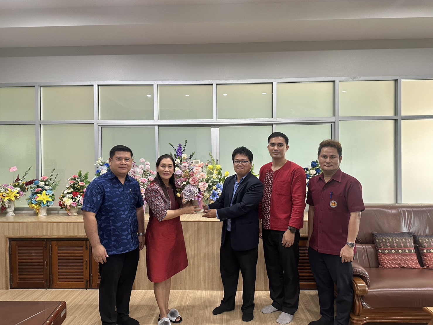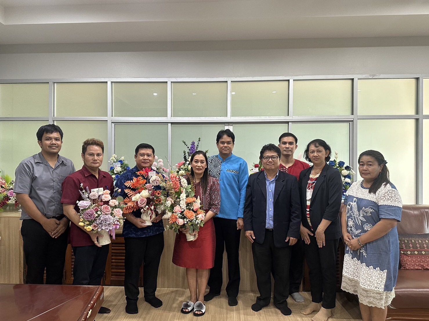 พร้อมด้วย ผศ.วุฒิไกร จันทร์ขามเรียน รองผู้อำนวยการฝ่ายวิชาการและวิจัย เข้าแสดงความยินดีกับ นางพัทธนันท์ ภูแก้ว เนื่องในโอกาสย้ายมาดำรงตำแหน่ง ผู้อำนวยการวิทยาลัยสารพัดช่างจันทบุรี