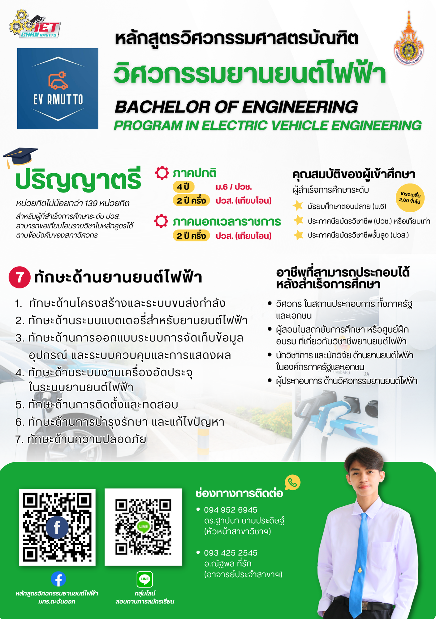 หลักสูตรวิศวกรรมศาสตรบัณฑิต สาขาวิชาวิศวกรรมยานยนต์ไฟฟ้า