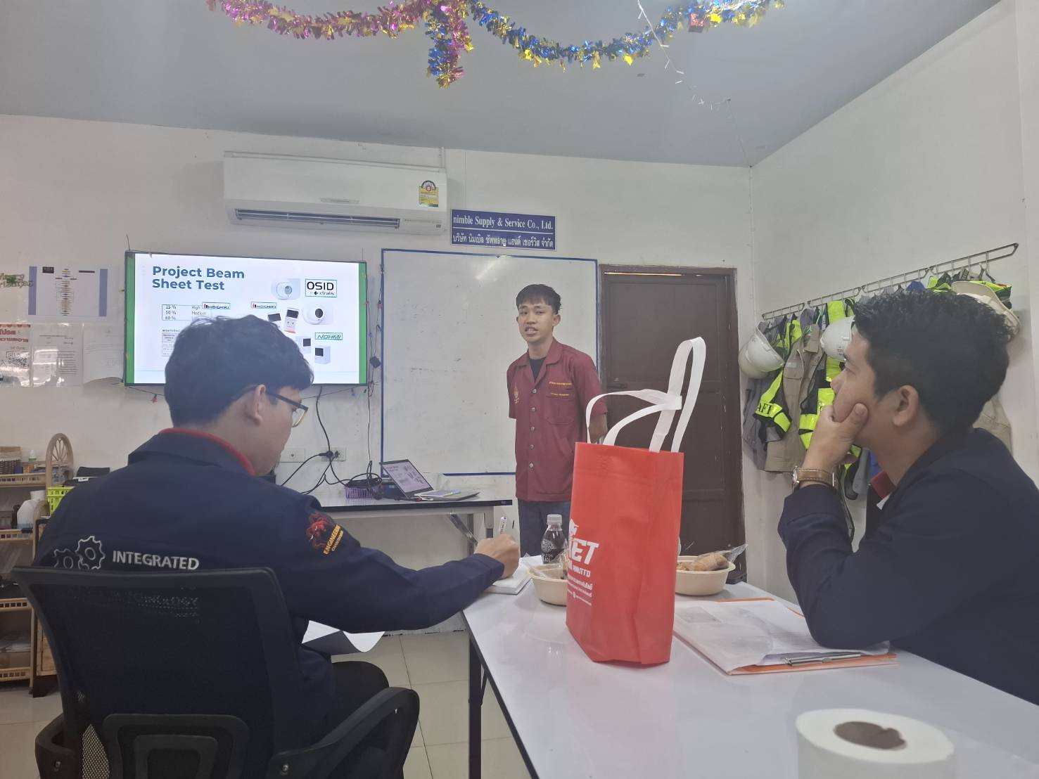 ภาพบรรยากาศการเข้านิเทศนักศึกษาสหกิจศึกษา เมื่อวันที่ 23 มกราคม 2568 โดย ผศ.ชาคริต วินิจธรรม และว่าที่ร้อยตรีศักดาวุฒิ บุญตั้ว คณาจารย์สาขาวิชาวิศวกรรมไฟฟ้า ได้เข้านิเทศฯ ในบริษัท นิมเบิล ซัพพลาย แอนด์ เซอร์วิส จำกัด จ.ชลบุรี