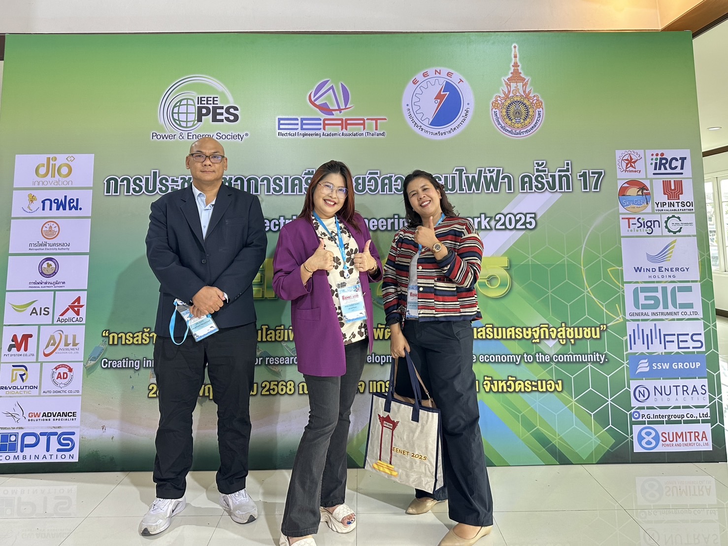ผศ.วุฒิไกร จันทร์ขามเรียน, ผศ.ชาคริต วินิจธรรม, ผศ.ดนัย ทองธวัช, ผศ.ดร.รตบงกช แสนจุ้ม, ผศ.ดร.กมลภัสสร์ มั่นศิลป์, ดร.ฐาปนา นามประดิษฐ์ และอ.ว่าที่ร้อยตรีศักดาวุฒิ บุญตั้ว คณาจารย์คณะวิศวกรรมศาสตร์บูรณาการและเทคโนโลยี เข้าร่วมการประชุมวิชาการเครือข่ายวิชาการด้านวิศวกรรมไฟฟ้า ครั้งที่ 17 (EENET2025) ระหว่างวันที่ 28-30 พฤษภาคม 2568 ณ เฮอริเทจ แกรนด์ คอนเวนชั่น อ.เมือง จ.ระนอง
